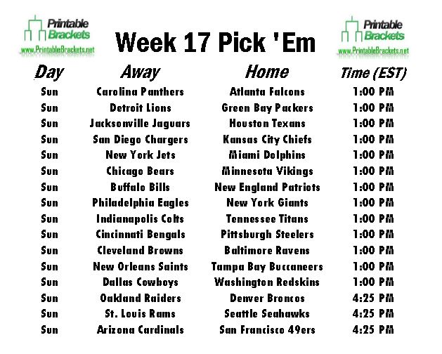 31/12/2021 · nfl week 17 game picks, schedule guide, playoff picture, fantasy football tips, odds, injuries and more