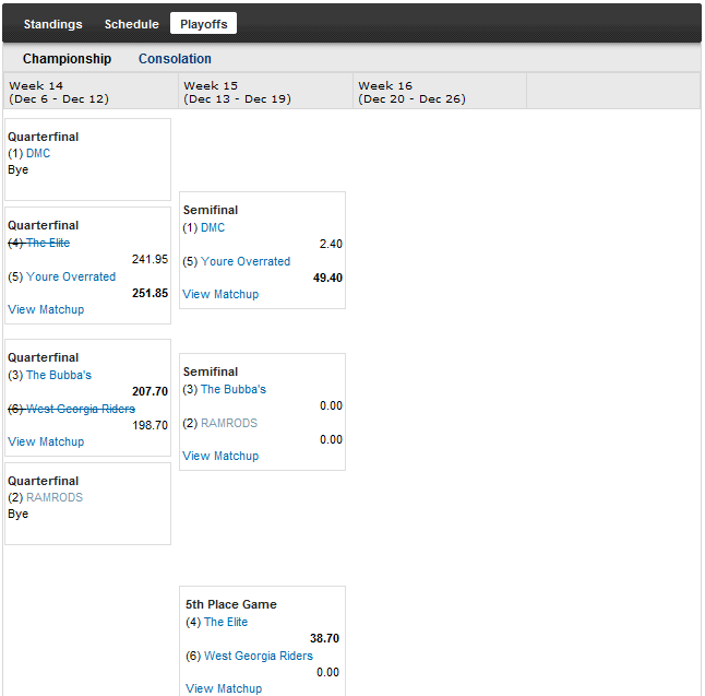 Playoff Bracket Yahoo Fantasy Football. But you will need to manually track your league's bracket and playoff schedule. The los angeles chargers on sunday night football. Manage playoff tiebreakers in yahoo fantasy. #1 and #2 seed have a first round bye. So my question is, are matchups determined like the nfl playoffs, where #1 will face the worst team in the playoffs: